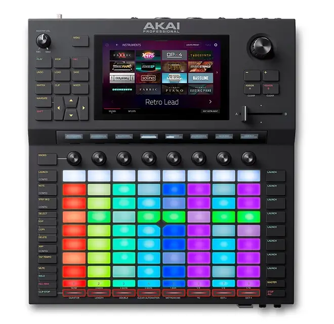 - 8 x 8 velocity-sensitive pad matrix for playing instruments, launching clips, and more