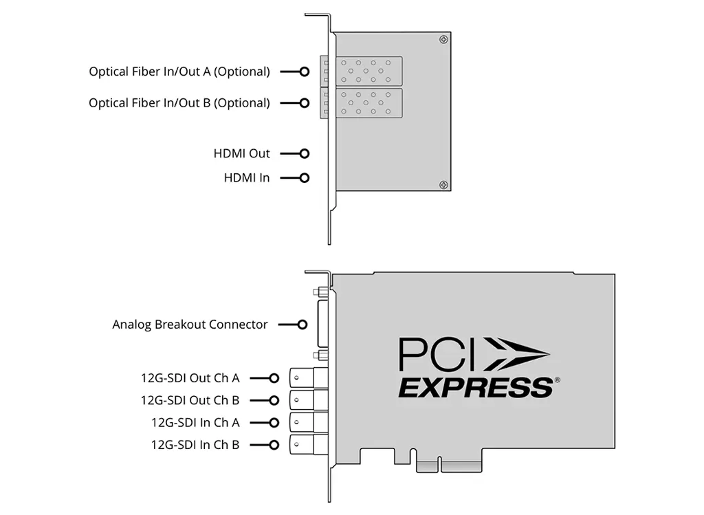Every DeckLink card features high quality connections so you get pristine video and audio along with compatibility for working with the widest range of professional SDI equipment. DeckLink 8K Pro Mini features 4 independent mini BNC 12G-SDI connections, DeckLink 8K Pro G2 includes Quad Link 12G-SDI, while other models feature single and dual link 6G and 12G‑SDI, or single link 3G-SDI. In addition, some DeckLink cards include a professional analog component, S-video and composite connections, along with 2 channels of AES/EBU and 4 channels of balanced analog audio in and out. All models include Black Burst/Tri-sync reference and serial deck control. The 6G and 12G-SDI cards feature multi rate connections that automatically detect and switch speed for working with all SD, HD and Ultra HD formats. The advanced DeckLink 8K Pro models and DeckLink 4K Extreme 12G support additional high resolution DCI formats and higher frame rates!