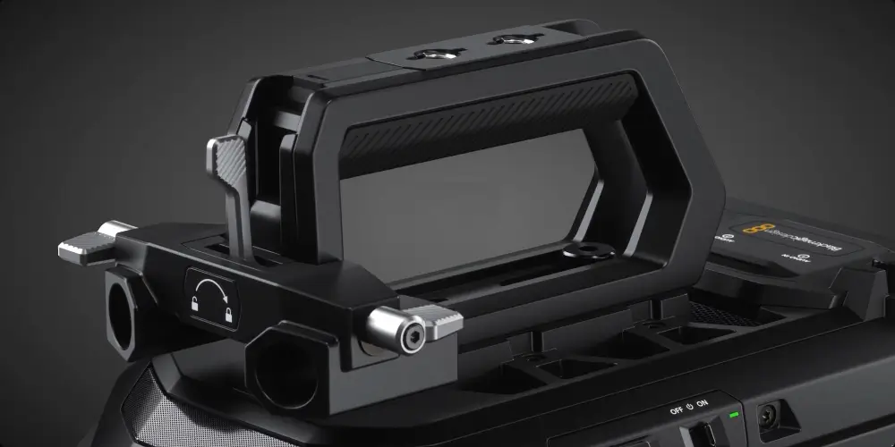The Blackmagic Design URSA Cine Top Handle mounts to the top of your URSA Cine camera and provides an additional handgrip to carry your camera safely. Built into the top of the handle are 1/4″-20 mounting threads that allow you to integrate additional accessories like the URSA Cine EVF. Not only does the top handle provide a comfortable way to carry your camera, it also allows you to hold your camera steady when shooting low-angle shots.