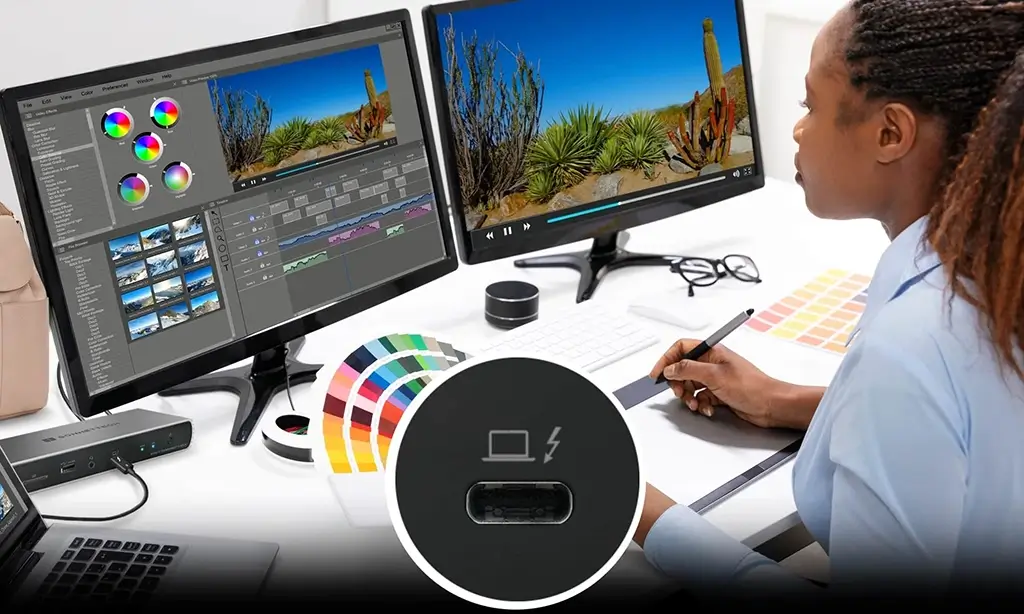 Connected to your portable computer with the included Thunderbolt cable, Echo 11 Thunderbolt 4 Dock provides up to 90W of power (Power Delivery), meaning it can power and charge your computer while connected, even when not in use, allowing you to leave your computer’s power adapter packed away.