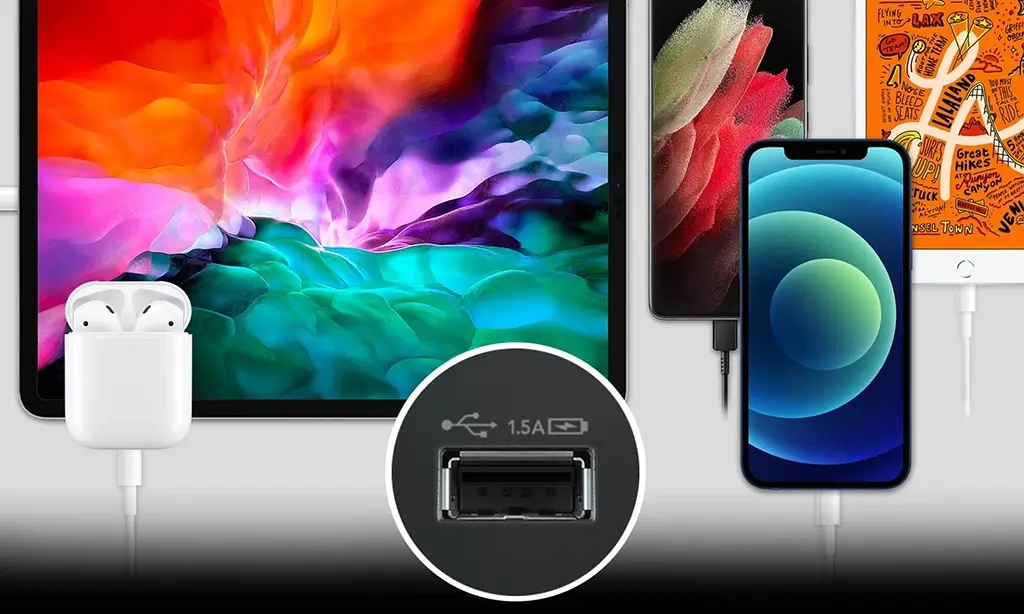 Echo 11 Dock includes a USB 2.0 charging port on the front capable of charging your iPhone®, iPad®, or other device.