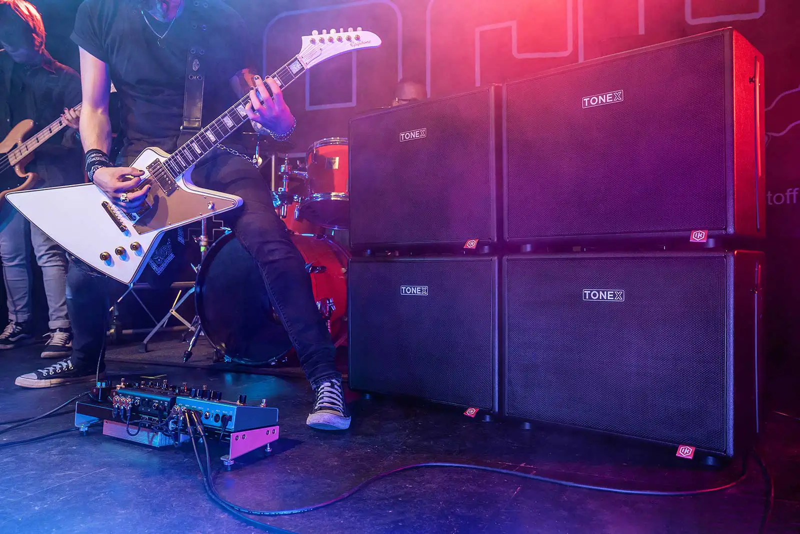 With two or more IK Multimedia TONEX Cabs, your setup becomes even more versatile. With a dual TONEX pedal rig, you can create a lush, immersive tone with spacious, time-based effects. You can also build a wet/dry or wet/dry/wet rig to precisely control the direct/FX mix, keeping the core tone intact while letting the wet effects add depth and space. Stack multiple cabs for a massive wall of sound and increased headroom to ensure your tone stays punchy and powerful, no matter the venue size.