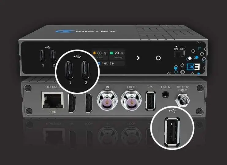All inputs of E3 can be recorded in .MOV/.MP4 through 3 USB ports or NAS storage. It supports streaming and recording simultaneously for post-production and further application.