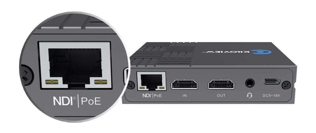 Kiloview N40 4K HDMI/NDI converter is a bi-directional converter that supports 4K HDMI video input (encoder) to NDI High Bandwidth with 4K HDMI loop-through for view on monitor, or 4K HDMI video output (decoder) from NDI High Bandwidth.