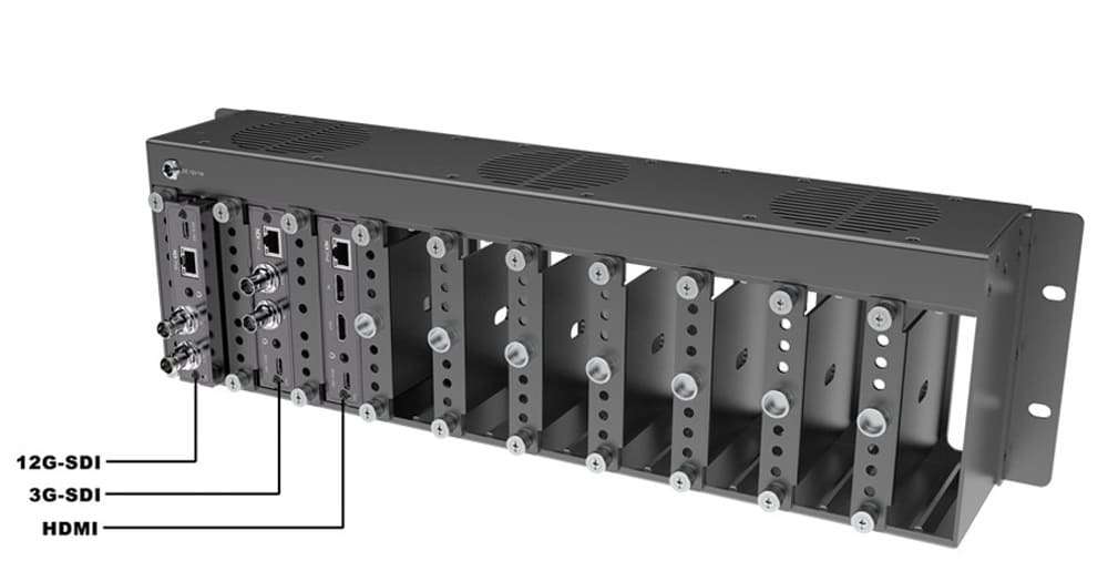 -Up to 10 NDI High Bandwidth Video encoder/decoder in a Chassis;