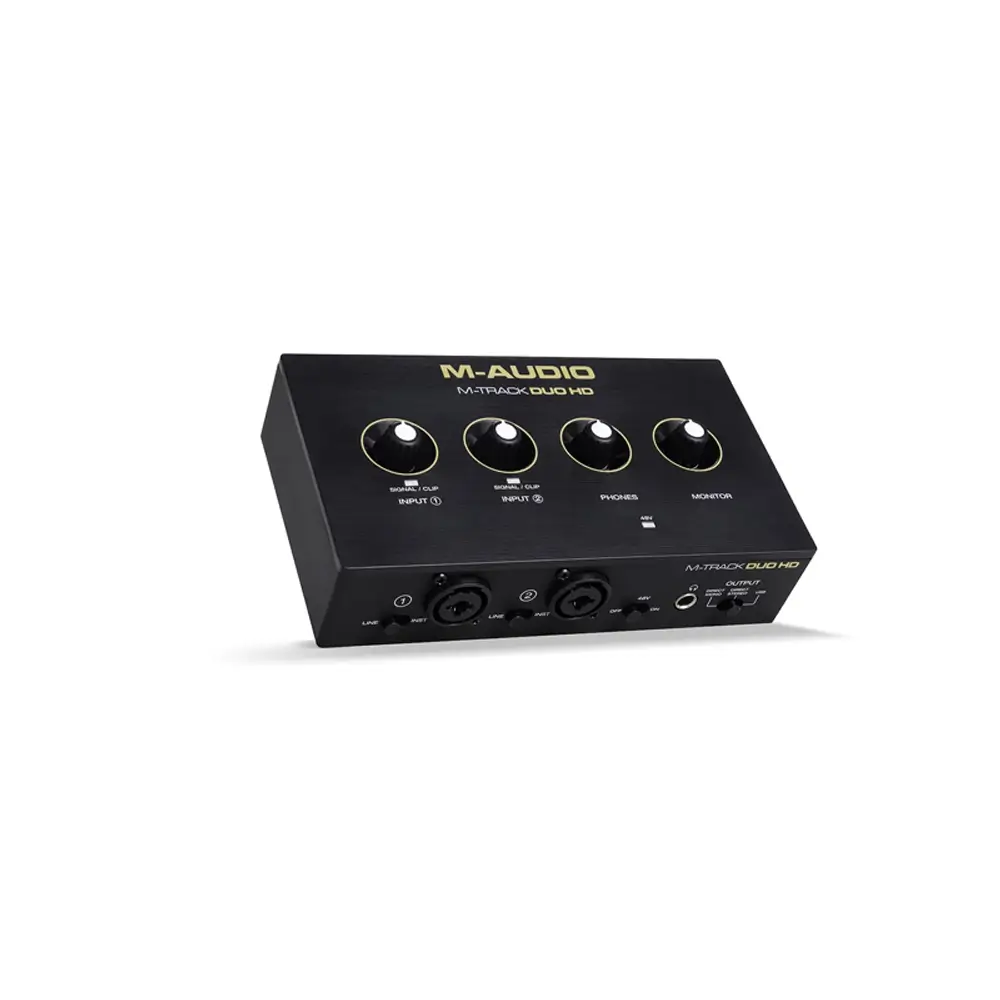 At 24-bit/192kHz audio resolution, zero-latency monitoring, and an onboard Crystal preamp that delivers 55dB of clear, chiseled gain, the M-Audio M-Track Duo HD has the capacity to impress audio professionals and beginners all the same. With powerful, professional sound quality in a single compact and affordable unit, this interface is equally suited for bedroom producers, sessions musicians, podcasters, and everyone in between.