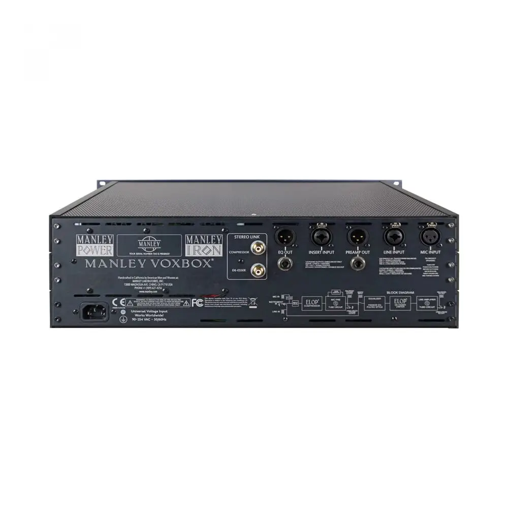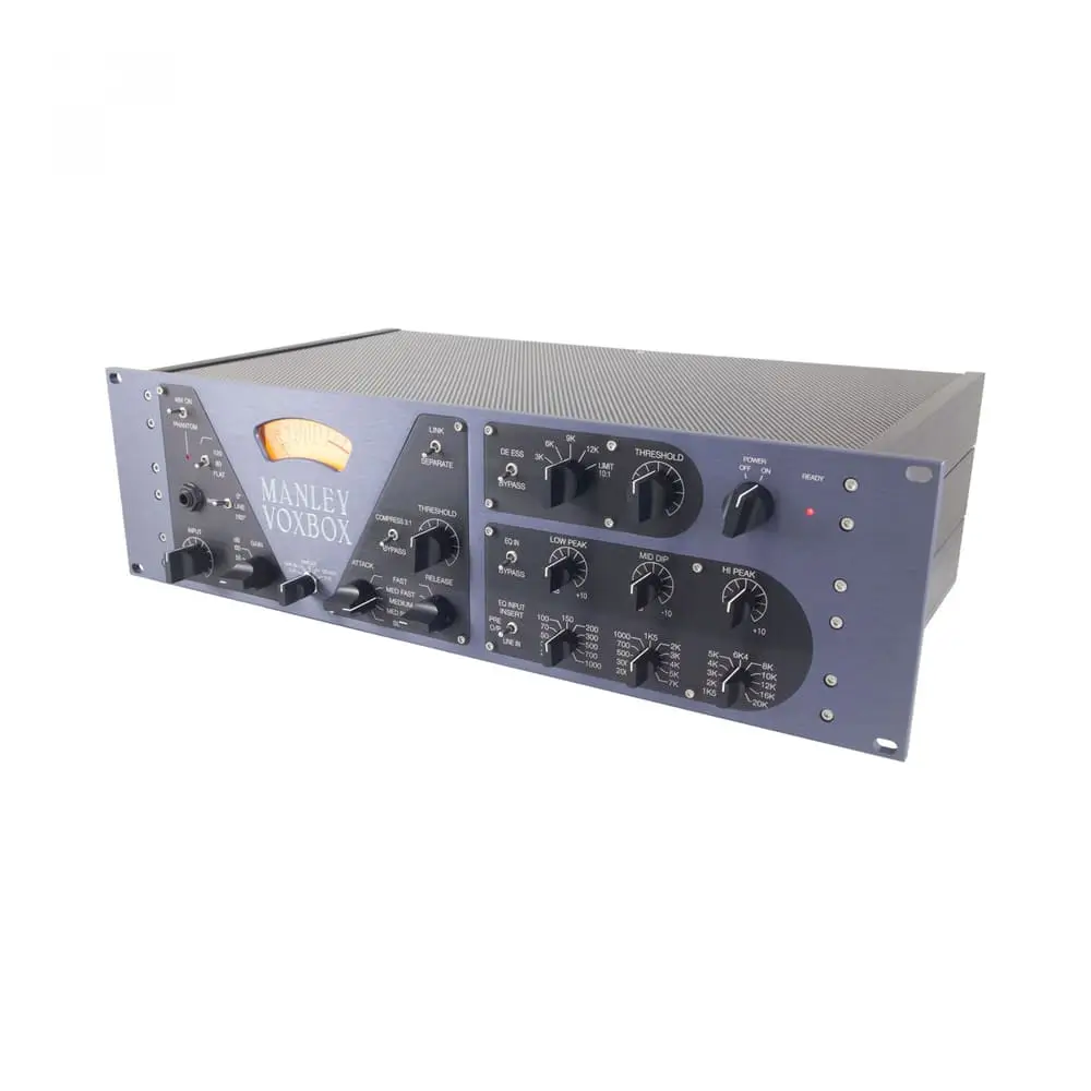 Primarily, it is a voice processor which in itself is not a novel idea, but the time had come to pull out all the stops and make a truly professional high-end statement. One that covered the needs of the project songwriters and big-time major studios alike. One whose all-tube signal path could bring every instrument and overdub to life. One that, plain and simple, sounded unquestionably better than the rest, provided flexibility, simplicity, and well thought-out ergonomics. Full of features, timeless style, robust build quality, and that world-famous “Manley Sound”, we present to you the MANLEY VOXBOX®.