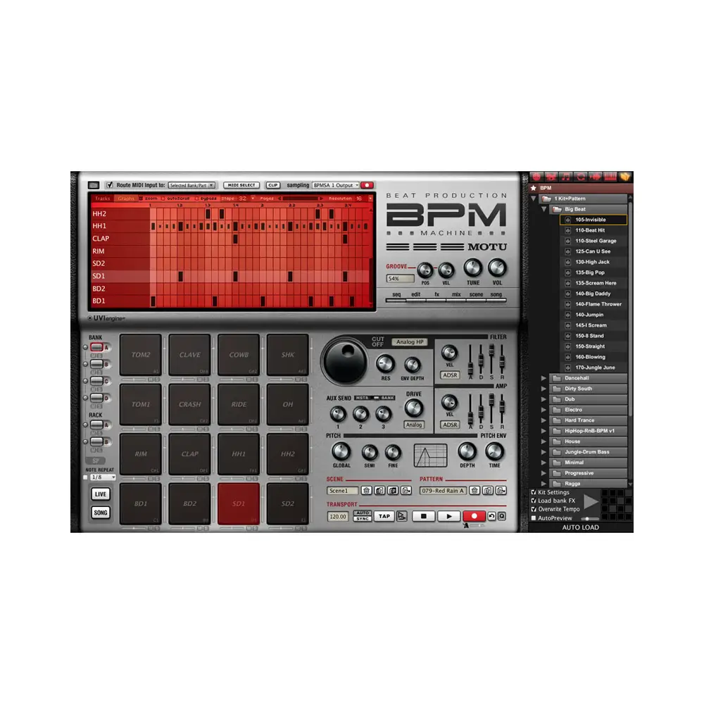 BPM® unites drum machine-style operation with advanced virtual instrument technology to give you the ultimate rhythm programming experience. Combine kits, patterns, and loops with instrument sounds, advanced mixing, and DSP effects to realize your rhythmic vision.