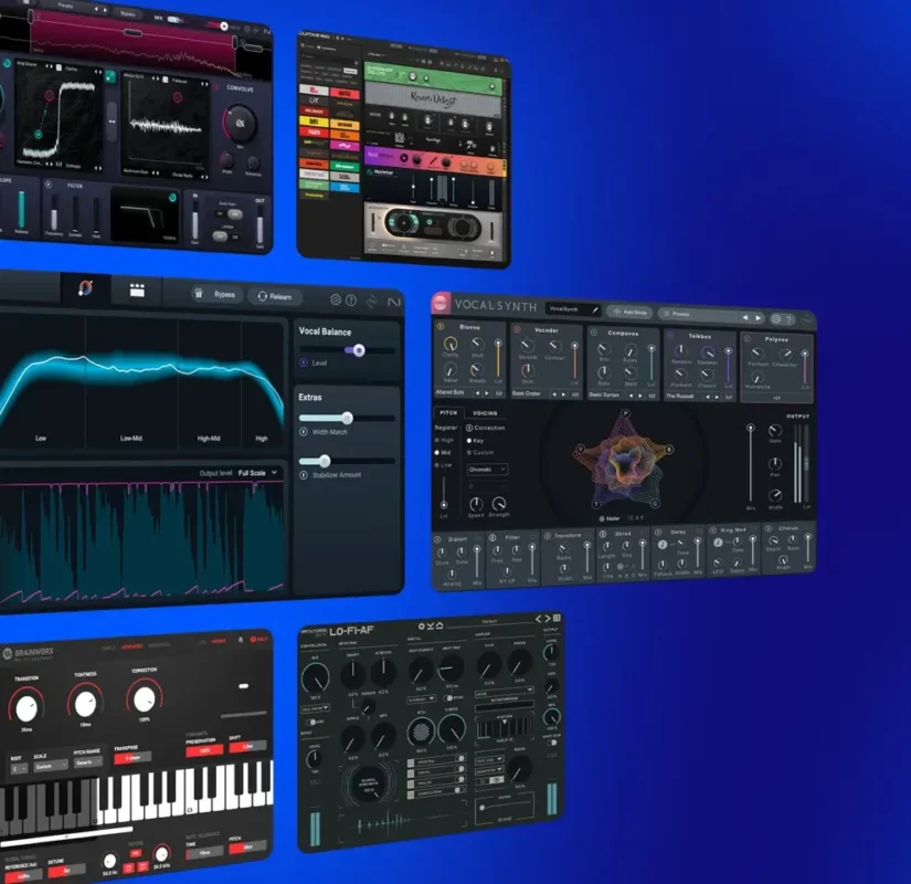 Sculpt release-ready track with new additions from iZotope, including Ozone 11 Standard for intelligent mastering, VocalSynth 2 for creative vocal production, and Trash for mangling and distorting sounds. Explore Brainworx’s bx_crispytuner for precise vocal tuning, Unfiltered Audio’s LO-FI-AF for added grit, and other studio essentials like bx_console N, and bx_limiter True Peak. Step into a creative effects playground with Guitar Rig 7 Pro, as well as classic effects like Raum, Mod Pack, Crush Pack, and Replika XT.