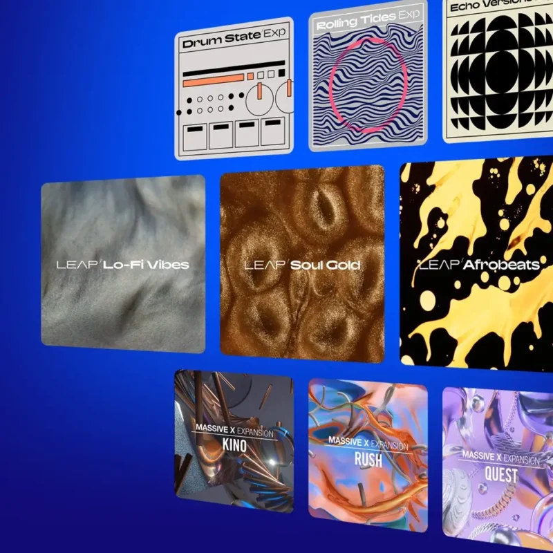 Expansions are genre-focused sound packs full of samples, loops, presets, one-shots, and more. Discover the iconic drum machine sounds of Drum State, modern dub flavors of Echo Versions, hypnotic liquid DnB rhythms Rolling Tides, and modern jazz flavors of Rare Vibrations. There’s also a range of Massive X Expansions containing 150 presets each, and brand-new genre-based Leap Expansions including Afrobeats, Progressive Trance, Soul Gold, Lo-fi Vibes, Latin Trap, and beyond.