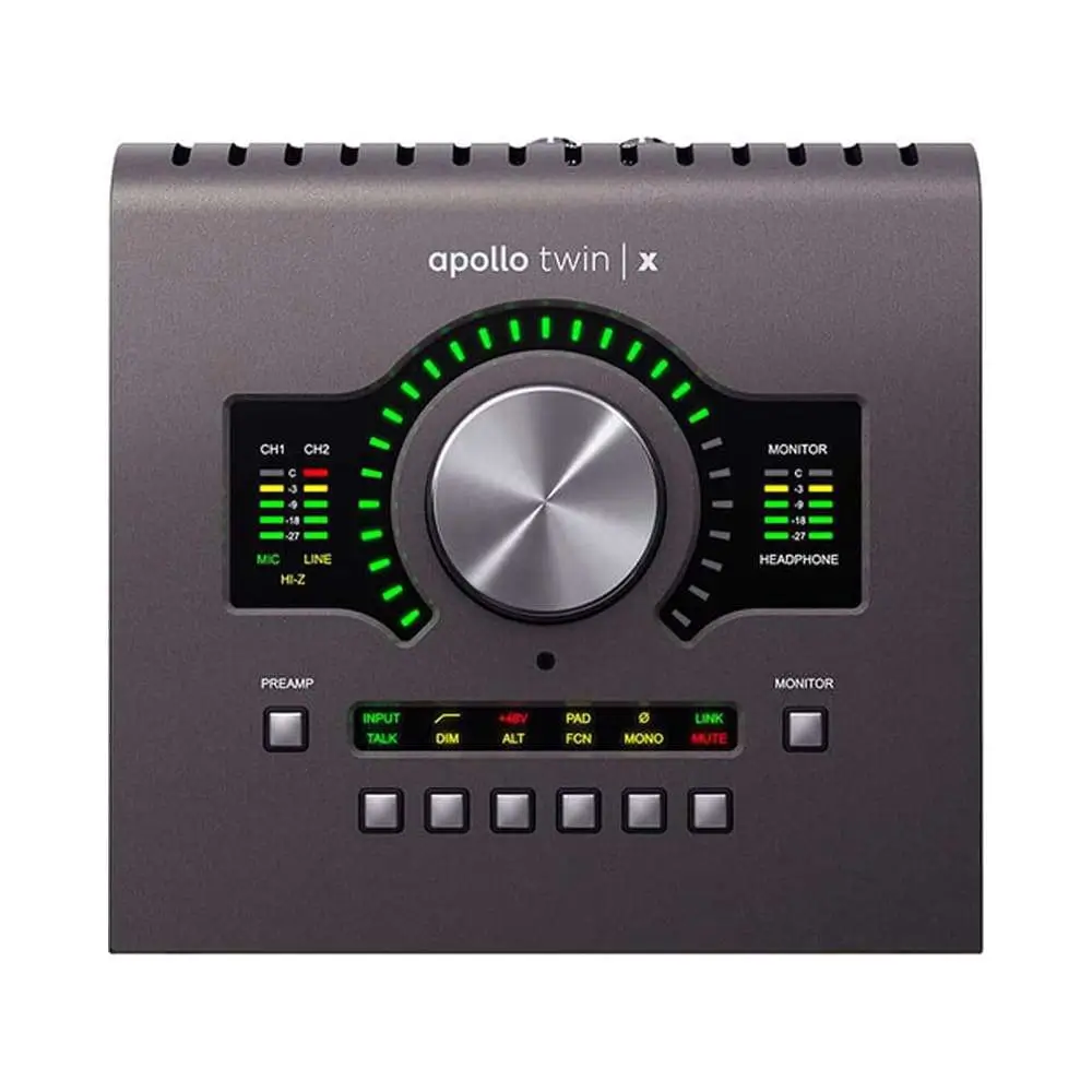 With its two Unison™ preamps and front panel Hi‑Z instrument input, Apollo Twin X USB lets you track in realtime through preamp and channel strip plug‑ins from Neve, Manley, API, and dozens more, giving you the same rich analog texture as the hardware used on decades of iconic music.*