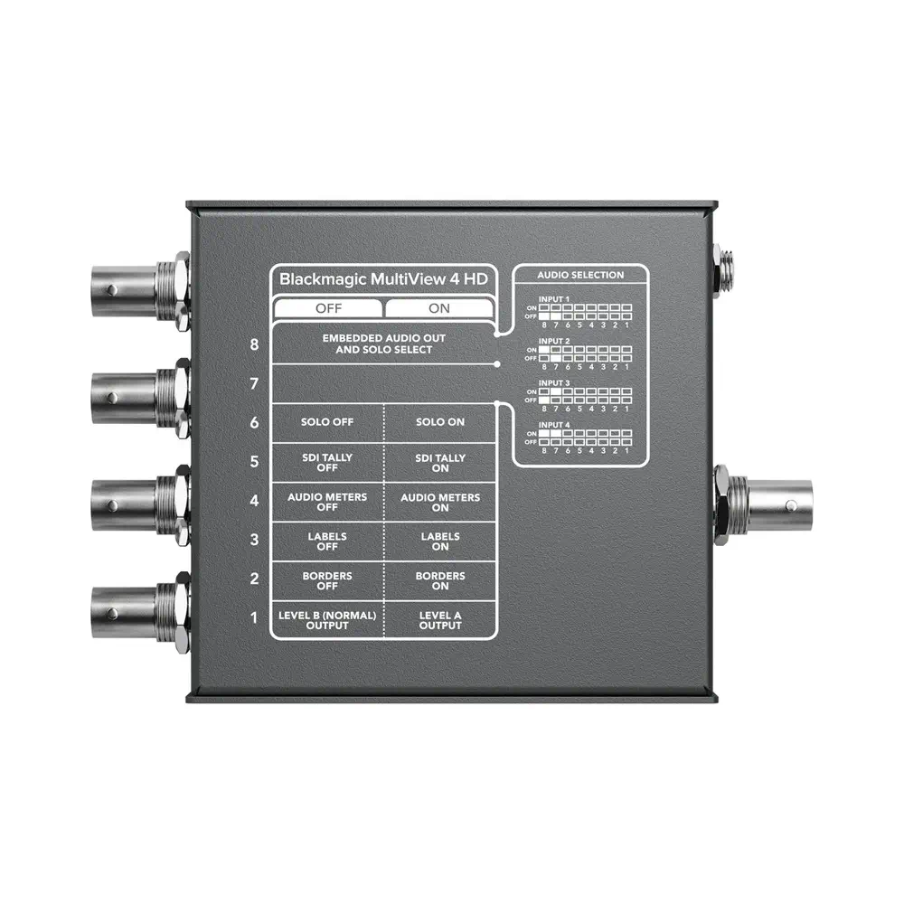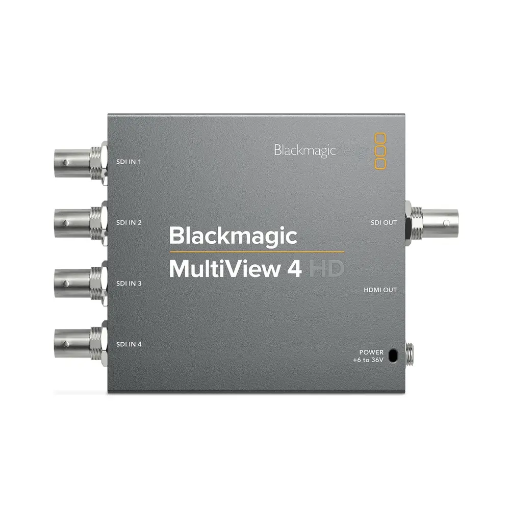 The new Blackmagic MultiView 4 HD model is a low cost multi viewer that lets you simultaneously monitor 4 different SDI video sources on a single display! Each view is a completely independent video monitor with overlays that you can turn on and off such as custom labels, audio meters and more. Full frame re-synchronization on each input lets you monitor any combination of video signals, even if they are different frame rates. The multi rate 3G-SDI connections are compatible with all existing SD and HD equipment and formats up to 1080p60, including Level A and B devices. Plus, you get both 3G-SDI and HDMI outputs so you can use traditional SDI displays or even low cost big screen televisions!