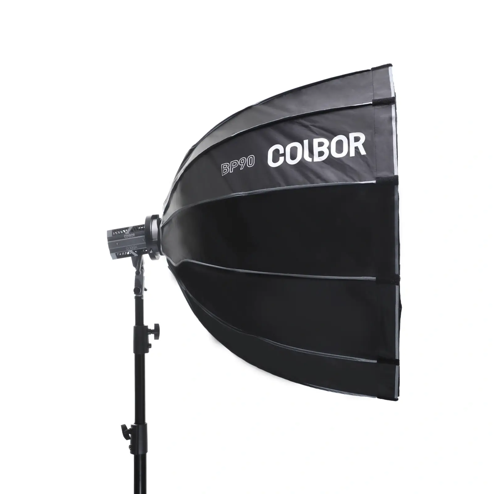 The COLBOR BP90 90cm Parabolic Softbox measures 35.4″ (90cm) and comes with Bowens mount and grid. It is used to soften the output of COLBOR studio lights including COLBOR CL220 and CL330. The fabric grid works to reduce spill light and offer directional control. The BP90 also includes a carrying bag for convenient storage and transport.