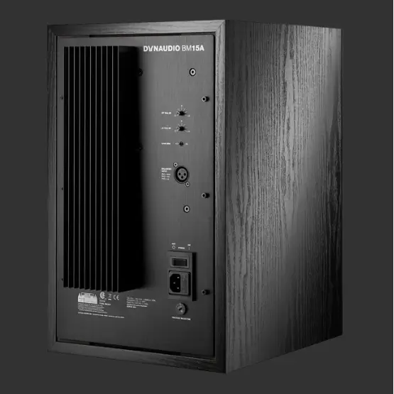 The BM15A is a relatively large 2-way active system comprising of a large 240mm (10″) woofer, a special version of the Dynaudio ESOTEC soft dome tweeter and an electronic phase-aligned crossover, which feeds the build-in dual, high performance discrete MOSFET amplifiers.