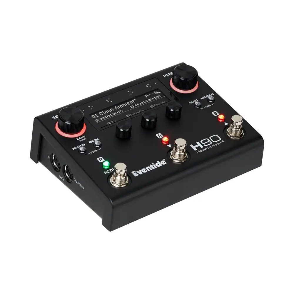 Discover why top artists and producers have chosen Eventide for over 50 years with the H90 Harmonizer®, Eventide’s next-generation multi-effects pedal. Whether you want high-quality bread-and-butter effects or experimental sounds unheard, the H90 has everything you need to inspire your creativity with an intuitive UI designed with players in mind, 66 effect algorithms, and hundreds of Program combinations curated for a variety of instruments and genres. With its comprehensive I/O and flexible routing options,H90 is designed to be the heart of your rig.