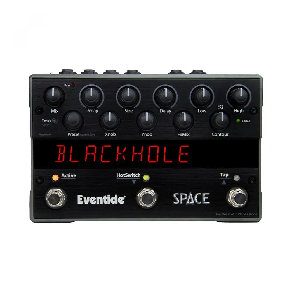 The Space reverb pedal offers a variety of spatial effects that raise the bar for stage and studio. From your standard Halls, Rooms, and Plates to the otherworldly Blackhole®, MangledVerb and Shimmer, Space has got you covered. Fun Fact: The pedal features infinite reverb options plus, the HotSwitch allows for instant parameter change with the press of a button.