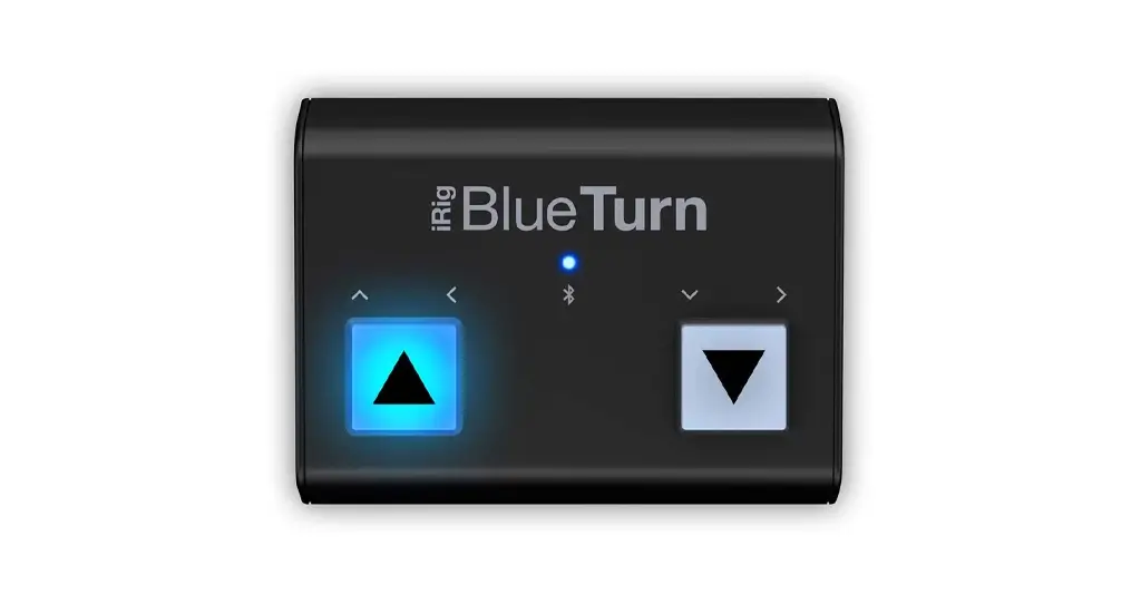 Now, using an iPhone, iPad, Mac or Android on stage for set lists and sheet music just got a lot easier! iRig BlueTurn is a Bluetooth page turner with silent backlit pad buttons that easily lets you turn pages and scroll through material hands-free. If you’d like to streamline the page turning process for your sheet music, lyrics, slides, tabs and other documents, iRig BlueTurn is the answer.