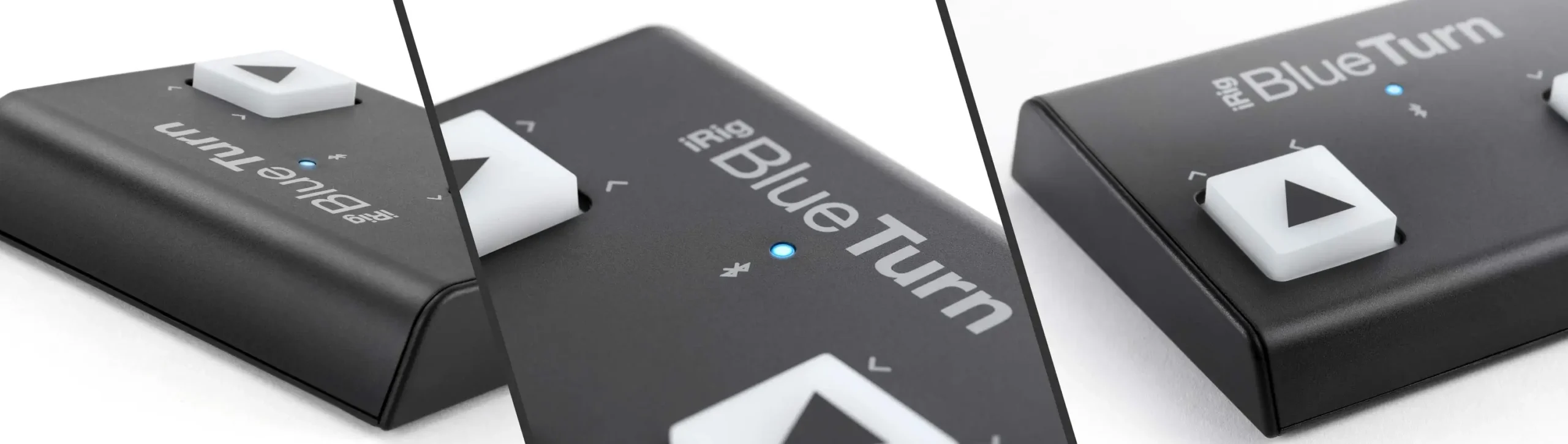 iRig BlueTurn lets you take control from the floor with ease. Its two noiseless buttons send HID messages to a synced device via Bluetooth LE technology.