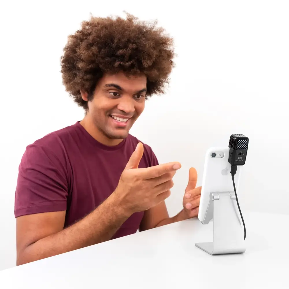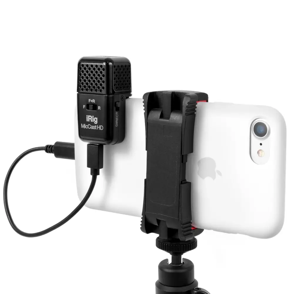 Weighing in at just a few ounces, this lightweight mic mounts securely onto your iPad or smartphone. Its innovative magnetic design lets you easily snap it right into place on your device in seconds (even with a case), so it’s ideal for field or location work. iRig Mic Cast HD works equally well in both portrait or landscape orientation on phones and tablets.