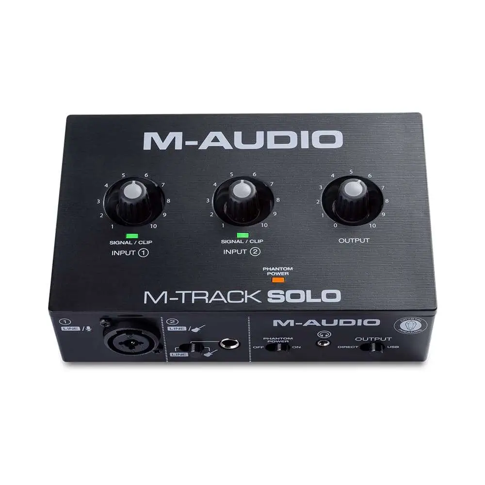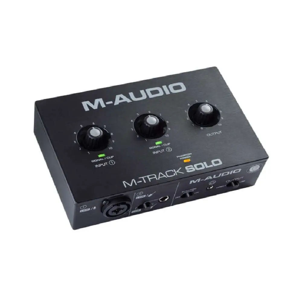 The M-Track Solo is the best, most portable recording interface in its class. It delivers 48 kHz audio resolution in a compact and easy to use format that is ideal for creating music on any Mac, PC or iOS device. This versatile interface works great for recording any type of sound source and features a single Combo Crystal Preamp with phantom power, plus a switchable Line / Instrument input making it compatible with any guitar or microphone. Plus, with M-Track Solo’s 2-channel recording you can use both line inputs simultaneously to capture digital pianos, drum machines or any other stereo 1/4″ device. M-track Solo is completely powered by USB, removing the need for an external power supply and making it perfectly portable for recording on-the-go. Throw it into your bag, grab a laptop, and create your next podcast, song, or mix anywhere you want!