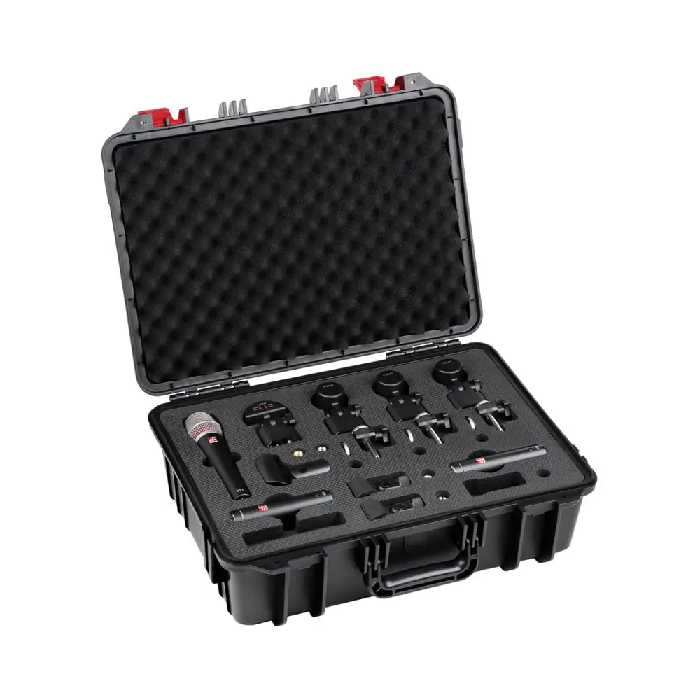 All mics and accessories come securely packaged inside a distinctive plastic flight case, with an empty space included to accommodate your favorite hi-hat mic.