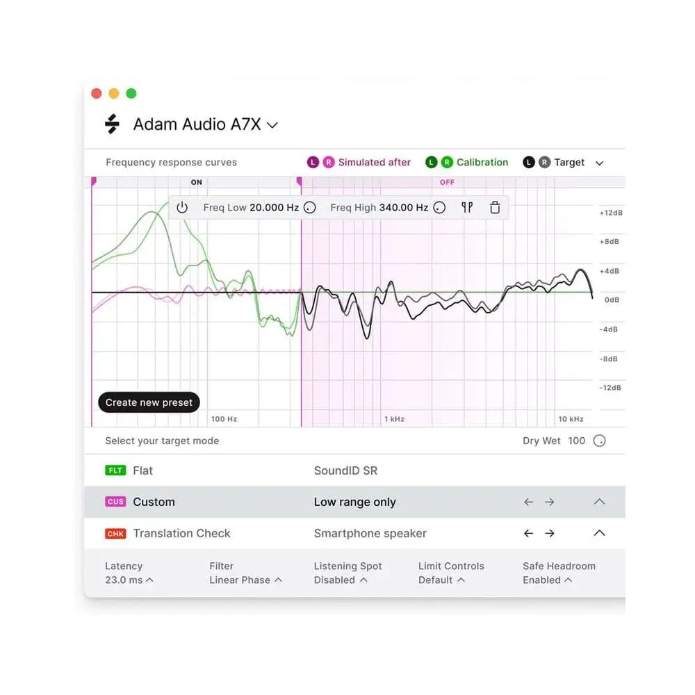 Make custom adjustments to the target curve in real time and manually select the frequency range that the calibration will be applied to.