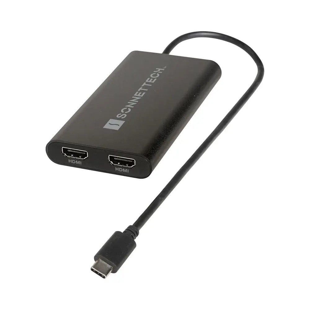 It’s well known that Apple® M series Mac computers offer outstanding performance but limit the number of external displays you can connect to them. If you’re using an M1/M2 MacBook Air®, M1/M2 13-inch MacBook Pro®, or M3 14-inch MacBook Pro that number is one. Featuring DisplayLink™ technology, the bus-powered Sonnet USB-C Dual 4K 60Hz HDMI Adapter (with PD Passthrough) beats the limit, enabling you to connect two 4K 60Hz (3840 x 2160); or two 1440p or 1080p 144Hz HDMI displays to a single port on your computer.