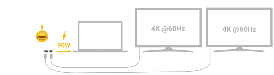 Connect Two 4K 60Hz HDMI Displays and Your Computer’s USB-C Power Cable Using Only One Port on Your Computer