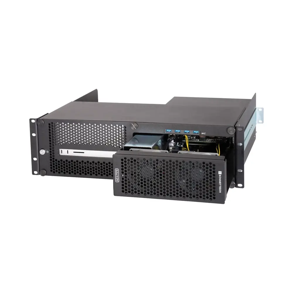 Professional 3U Rackmount Enclosure with Two Slot Thunderbolt to PCIe Cad Expansion for Mac Studio. Designed for Optimal DV Expansion for Bandwidth-hungry DV I/O Cards.