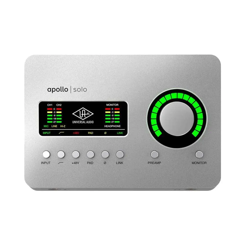 Universal Audio Apollo Solo Heritage Edition is the world’s finest Thunderbolt 3-powered desktop recording audio interface for Mac and Windows, giving you class-leading audio conversion, two mic preamps — so you can record through preamps from Neve, API, SSL, and more — and a suite of included UAD plug-ins for recording album-quality results, with near-zero latency.