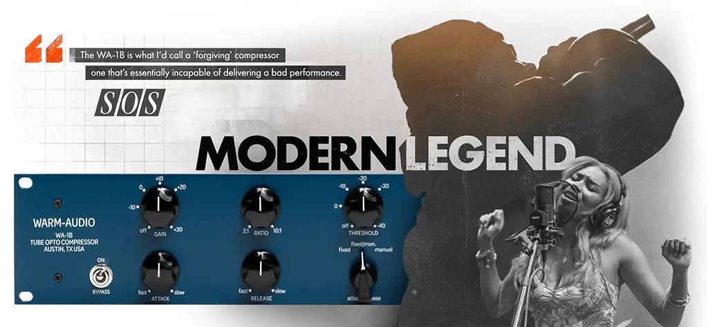 Like the original, the WA-1B has all of the key controls normally absent from more vintage optical compressors. Using the threshold, ratio, attack, release, and makeup gain controls allows for precise dynamic control and tone shaping without sacrificing vintage tube-optical tone.