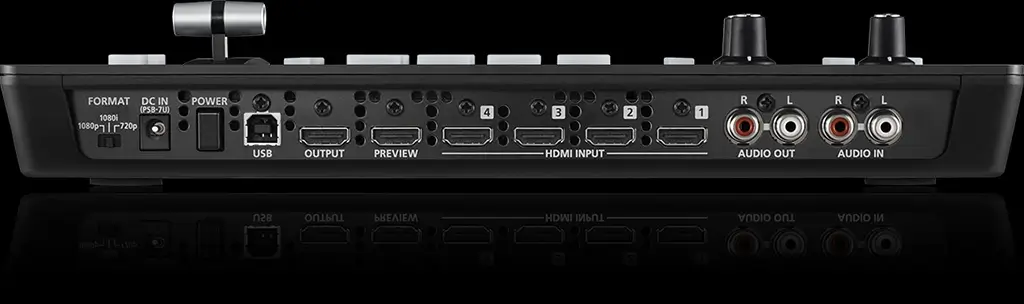 The V-1HD sets a new benchmark in simple-to-use interfaces for setup and control. Connect an HDMI monitor to the multi-viewer preview output. Basic operation requires just a few buttons and the T-Fader, the most recognizable video switcher interface for amateurs and professionals alike. Large broadcast-style back-lit buttons ease video switching in low light conditions. Meanwhile, output fade dials in smooth, fast fades to black or white.