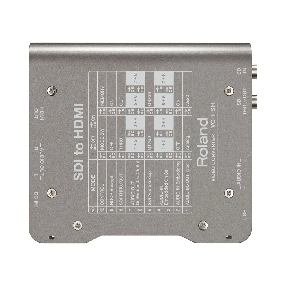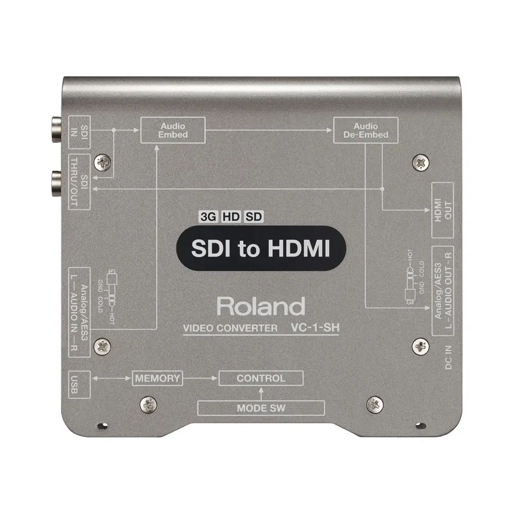 The cost of SDI monitoring sometimes can be prohibitive for certain applications. The VC-1-SH converter allows you to convert an SDI signal to HDMI, providing a more cost effective monitoring solution. This converter is also complimentary to the Roland V-40HD multi-format video mixer when you want to use an SDI camera as an input to the mixer.