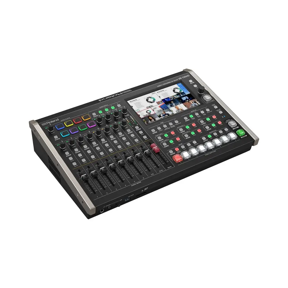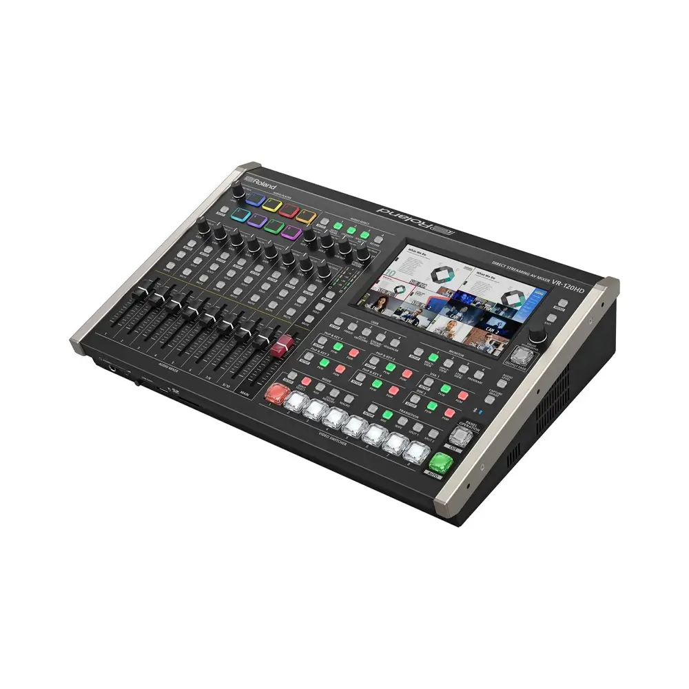 The unit features six HDMI inputs and six SDI inputs capable of handling resolutions up to 1080p60, as well as three HDMI and three SDI outputs, 42-channel audio mixing, and direct LAN and USB-C live streaming outputs. Perfect for use as a standalone production switcher, the VR-120HD offers an integrated 7″ touchscreen display with a graphical menu for previewing all your incoming signals and viewing your intended program output without ever needing additional preview monitors.Hybrid live and online productions can easily be managed by a single operator with hands-on control and with sophisticated automation functions, customizable workflows, one-touch macro sequencing, and remote control of up to 12 PTZ cameras. The integrated eight-layer video effects engine, seven selectable output modes, and six HDMI input options with frame rate converters and real-time scalers only scrape the surface of the versatility offered by this switcher, which also handles a wide range of cinema and broadcast frame rates and has internal recording when using an optional SDXC card or USB-A flash drive.