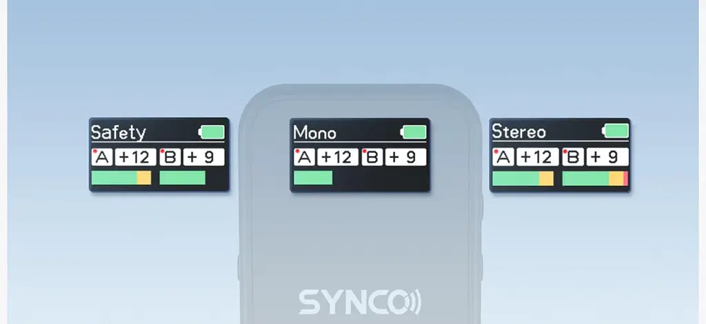 The G2 Mega features a safety channel function. When it is activated, the right track will capture sounds at 6dB lower to avoid unexpected audio clipping or spiking. Besides mono recording mode, the 1-trigger-2 version also offers stereo channel mode for recording two separate audio tracks at the same time.