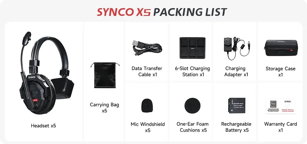 Synco X-Talk X5 Wireless Intercom System with 5 Single-Ear Headsets