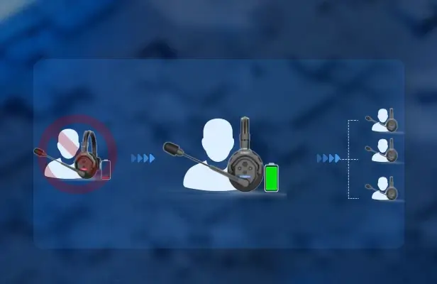 Say goodbye to concerns about losing or running out of battery on the master headset.