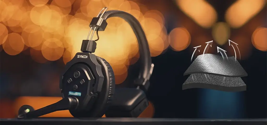 Crafted from lightweight ABS materials and smooth leather, each Xtalk X wireless intercom headset weighs only 188g (6oz) with the battery included, ensuring comfort during extended use. The upgraded over-ear leather cushion is designed to fit the ear, providing enhanced stability and comfort, making it ideal for challenging work environments.