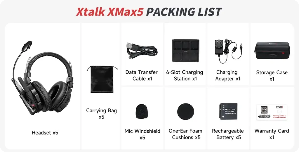 Synco Xtalk XMax5 Wireless Intercom with 5 Dual-Ear Headsets