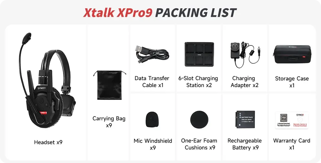 Synco Xtalk XPro9 Wireless Intercom System with 9 Single-Ear Headsets