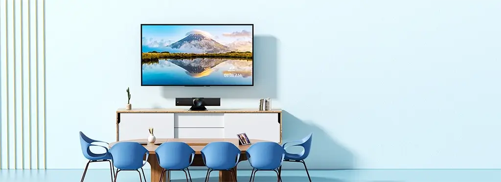 Meet bar is your complete video conferencing solution. Enjoy brilliant video, beam forming microphone, dynamic speakers, and easy setup in a streamlined unit, perfect for small to medium rooms, delivering exceptional, face-to-face video conferencing experience.