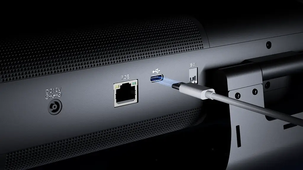The Meet Bar webcam features USB 2.0 video output for smooth visuals and fast plug-and-play functionality. No need to fiddle with drivers or software – simply connect it to your computer’s USB port, and it will be automatically recognized as your video and audio source for virtual meetings. Enjoy seamless video conferencing right out of the box.