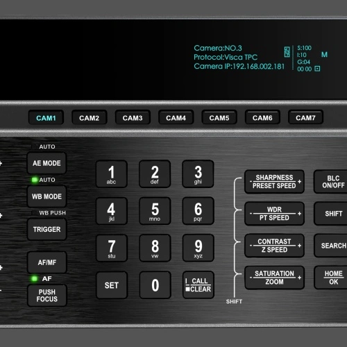 The V-Joy and V-Joy+ controller keyboard’s intuitive design features dedicated sections for 3E (AE, AF, AWB), Presets, versatile multi-functions, camera switch shortcuts, and a responsive joystick knob. The high-definition LED screen offers a comprehensive view of camera and control statuses, ensuring all vital information is readily available in an instant. Experience the perfect blend of form and function that enhances your workspace’s visual appeal.