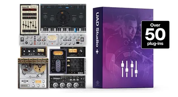 Along with included synthesizers and tape echos, Teletronix LA-2A compressors, and Pultec EQs — you can tap into the entire library of over 200 UAD plug-ins to unlock proven hit-making tools that will push your productions to the next level.