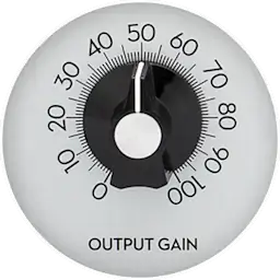 The output gain control adjusts the amount of makeup gain applied to the output signal. This is on a percentage scale with “100” equalling 100%, which is approximately 40 dB of makeup gain. Take care to monitor DAW or recording device input levels as you raise the makeup gain to avoid unwanted clipping.