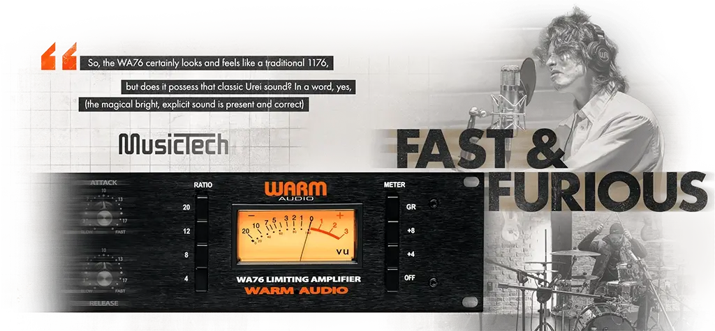 Like the original 76-style compressor, the WA76 includes all the features that deliver a complete and professional recording experience.