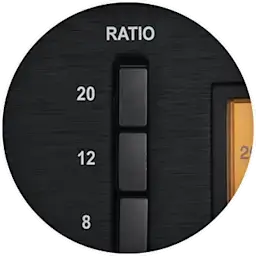 The ration buttons control how much compression will be used against the signal. When the compression ratio is set to 4:1, the input signal must cross the threshold by 4dB in order for the output level to then increase by 1db. At 20:1, the input must cross the threshold by 20dB, and so on. Higher ratios = more compression or “squishing” of signal.
